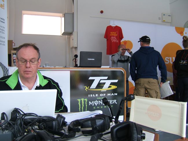 After a good look round and a half lap to Ramsey I end up in the Grandstand Area to see the Manx Radio lot and the scrutineering for that evenings practice sessions...